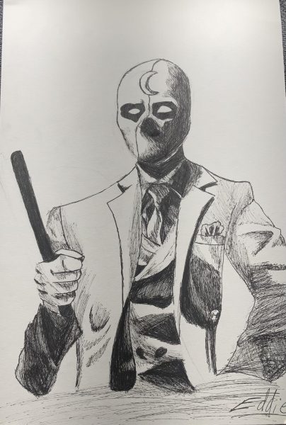 Finding her love of art because of her brother, Eddie Smith, sophomore Lizzie Winklepeck strives to improve her artistic abilities. She enjoys many of his art projects, but her ultimate favorite is his pen and ink drawing of Moon Knight from the Marvel Universe. What people don’t know is that he quit for two years because he simply didn’t believe in his talent. However, Winklepeck noticed, “once he started drawing in Mr.Couling’s class more, he got back at it, and he practiced and practiced,” she adds in hopes that others will be inspired by her brother’s willingness to continue his passion. “My advice would never stop working hard at something because you never know how much you could improve.”